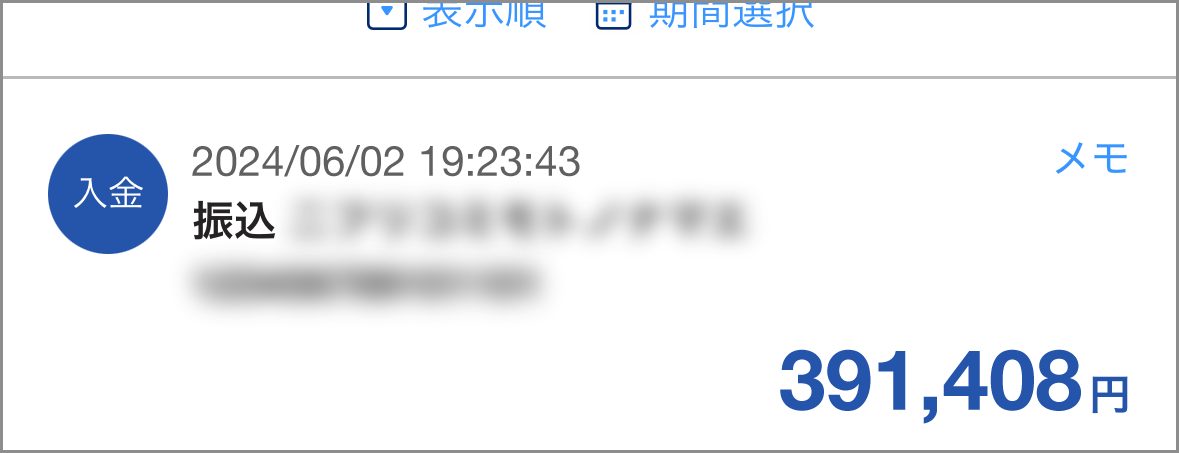 (毎月340万ほどが入金されます)