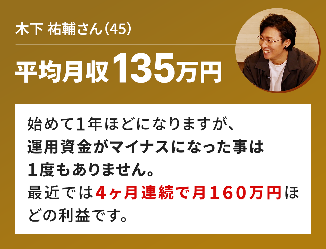 当時は借金もあり2万円からのスタートでしたが、1年掛けずに人生逆転できました。